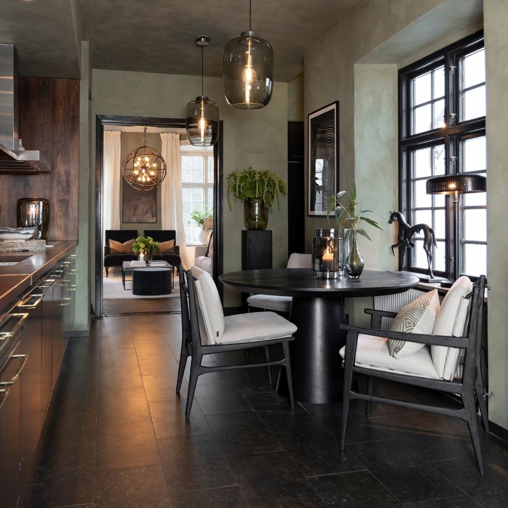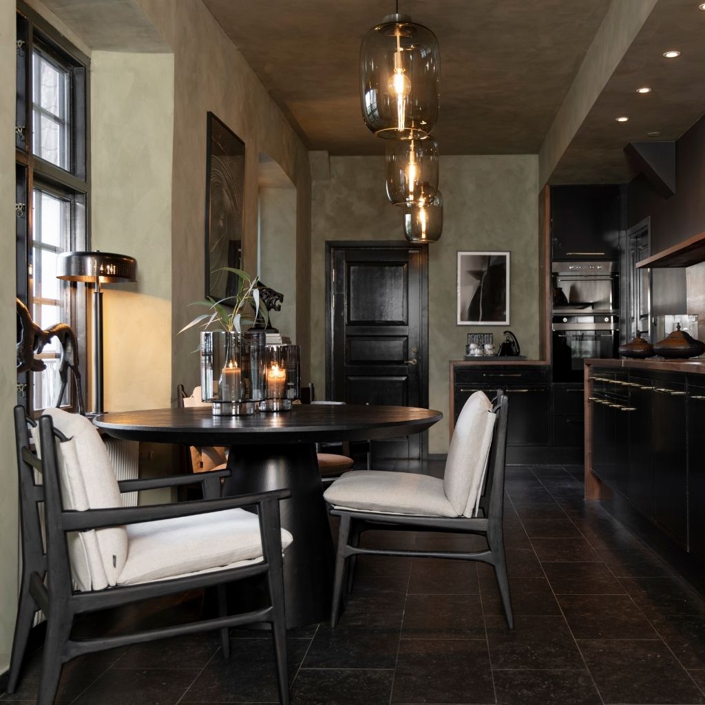 Runt matbord i massiv ekfanér med en perfekt kombination av elegans och funktion. Den cylinderformade stommen ger bordet ett stabilt och balanserat uttryck, vilket bidrar till en modern men samtidigt tidlös design som passar in i alla typer av inredningar. Slät bordsskiva med hård och tålig yta i en stilren design.