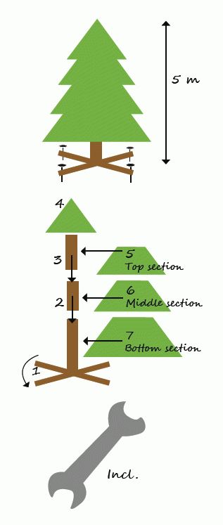 Dekorativ grön julgran med en höjd på 500cm. Underbar julgran som sprider härlig julstämning. Enskilda grupper av grenar hakas fast i stammen när granen monteras, så de kan formas jämnt.